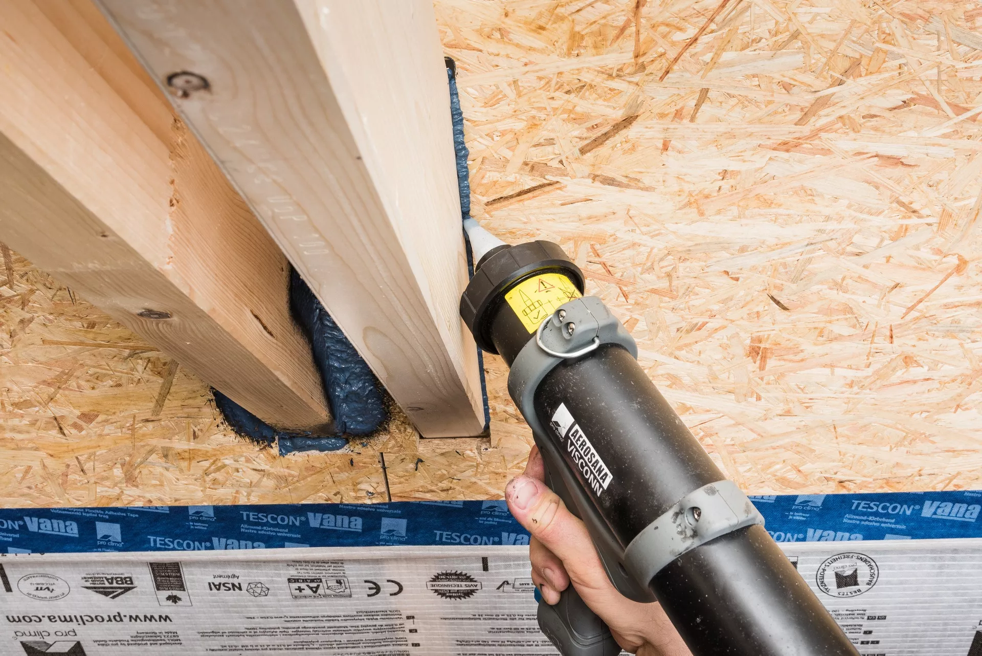 Mit AEROSANA VISCONN FIBRE kann die Luftdichtheit geometrisch anspruchsvoller Anschlüsse (z. B. in der Sanierung) einfach und sicher hergestellt werden.