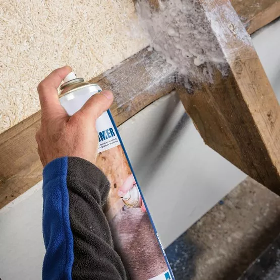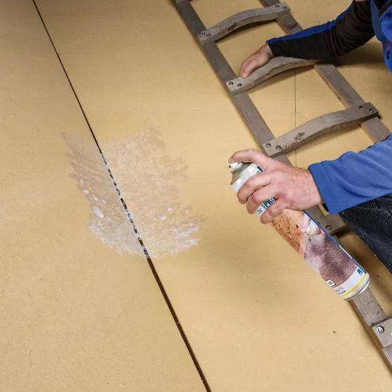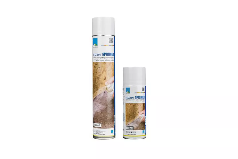 Spray TESCON SPRIMER from a distance of approx. 20 cm to the surface (e.g. wood-fibre, concrete or old timber) to form a seamless coating.