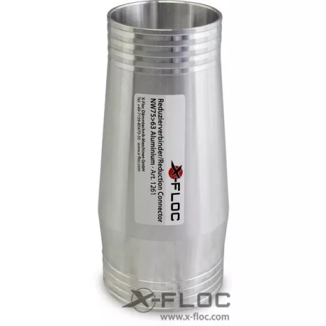 Pièce réductrice en aluminium fabriquée avec précision pour connecter des tuyaux d'insufflation et de transport de différentes tailles. Effet de scellement maximal grâce aux connexions de tuyaux coniques et au contour d'étanchéité spécial.