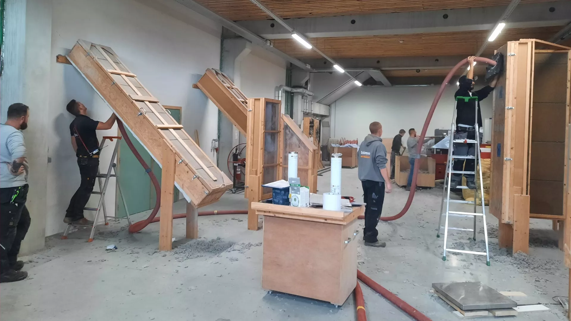 - Uitleg over de verschillende machines en toebehoren (het versterkingsstation, de inblaaskoppen voor muren, …), hoe ze te gebruiken en onderhouden.