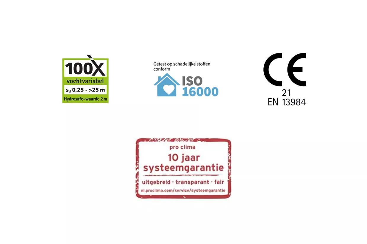 Gebruik bij toepassing tussen twee isolatielagen bij dakrenovaties van buitenaf voor beide isolatielagen alleen minerale wol of steenwol. Neem contact op met de technische hotline van pro clima in Duitsland voor hulp bij het berekenen van de mogelijke dikte van de isolatie.