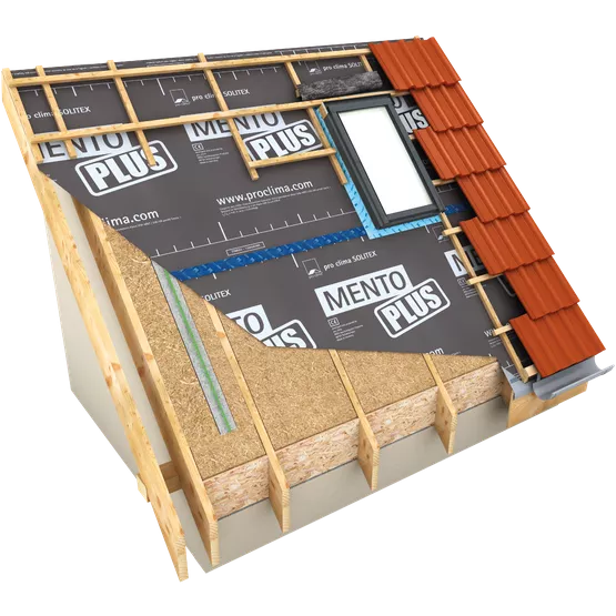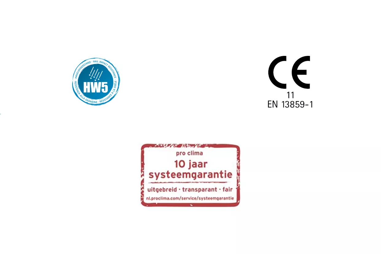 Volgens deze voorschriften is SOLITEX MENTO PLUS bij gebruik als 'onderspanfolie' met een eenvoudige overlapping bij daken met keramische en betonnen dakpannen geschikt als extra bescherming tegen regen. Wordt SOLITEX MENTO PLUS als dakfolie met een eenvoudige overlapping op houten beschot gebruikt, is ze ook bij verhoogde eisen geschikt als extra bescherming tegen regen.