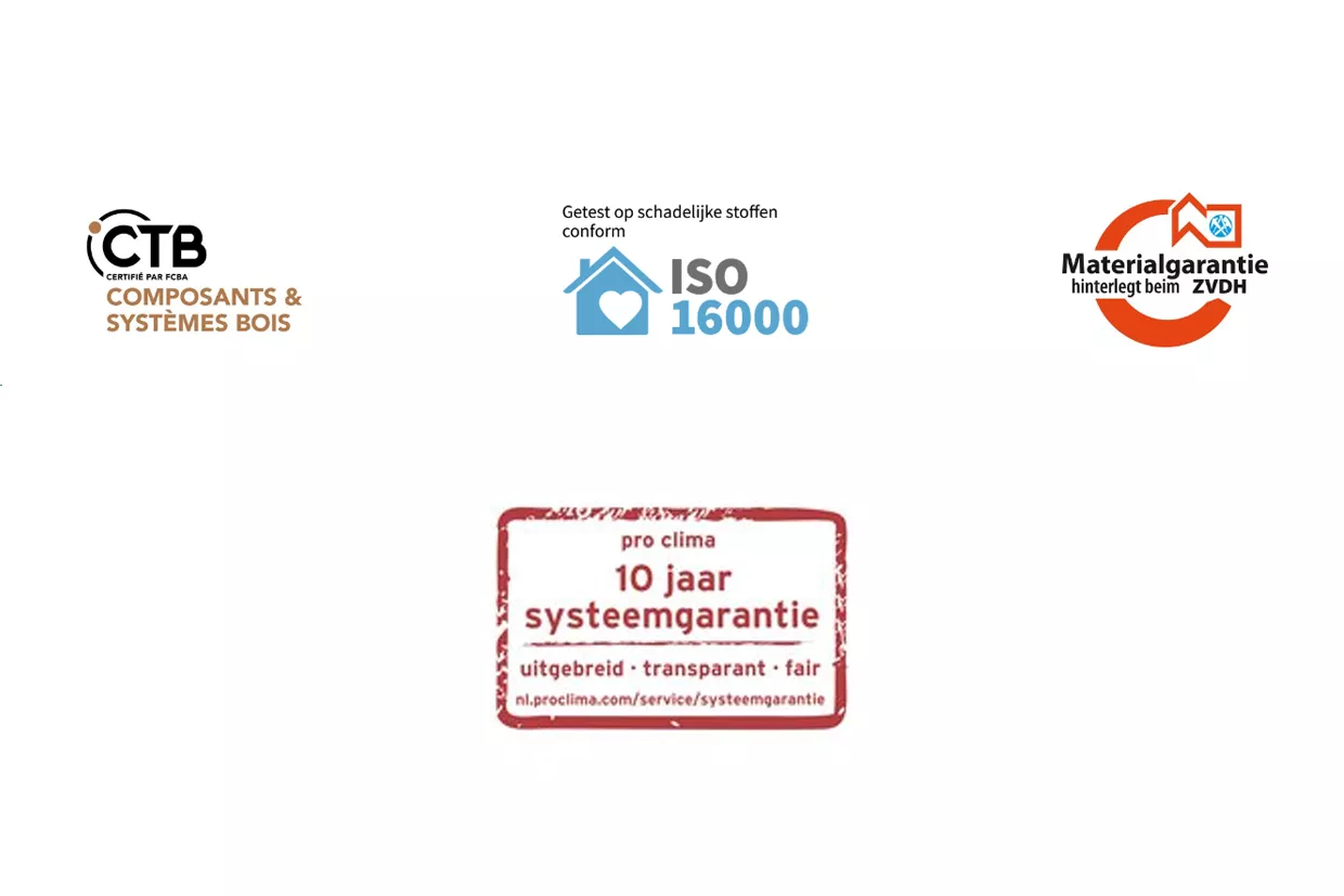 - Folies onderling (dampremmen, onderdak- en wandbeschermingsfolies)