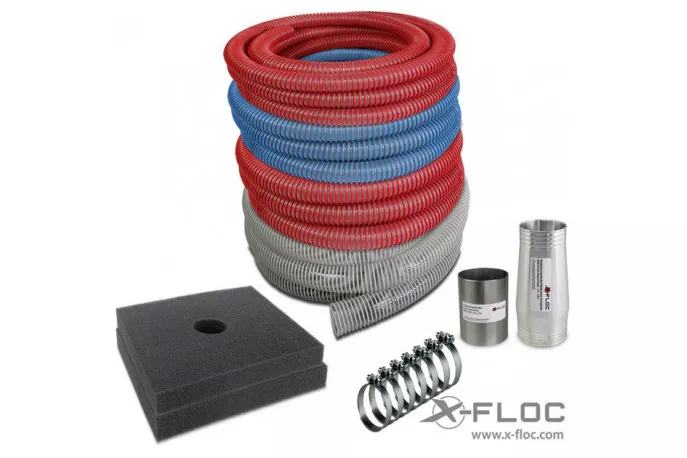 Set met aanbevolen accessoires voor het verwerken van cellulose, houtvezel, glaswol en meer met machines met een NW75-uitgang