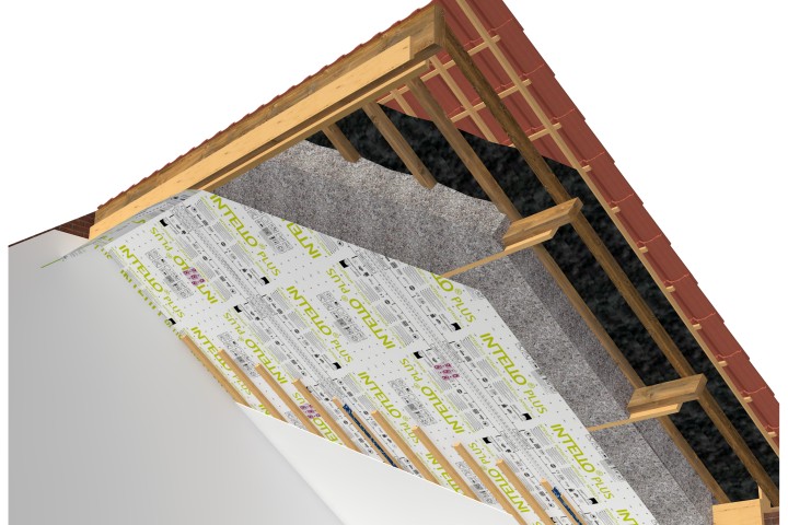 ‘Het handige aan ISOPROC is dat zij een volledig pakket kwaliteitsvolle producten aanbieden, waaronder het intelligente vochtgestuurde dampscherm INTELLO PLUS van pro clima,’ duidt Katrien haar keuze voor pro clima luchtdichtingsmateriaal. ‘Dit dampscherm heeft trouwens een wapening, wat noodzakelijk is voor het inblazen van cellulose onder hoge druk. De extra stevigheid van dat gewapende dampscherm maakt het plaatsen ervan ook een stuk aangenamer, omdat het materiaal beter bestand is tegen beschadiging tijdens het plaatsen.’